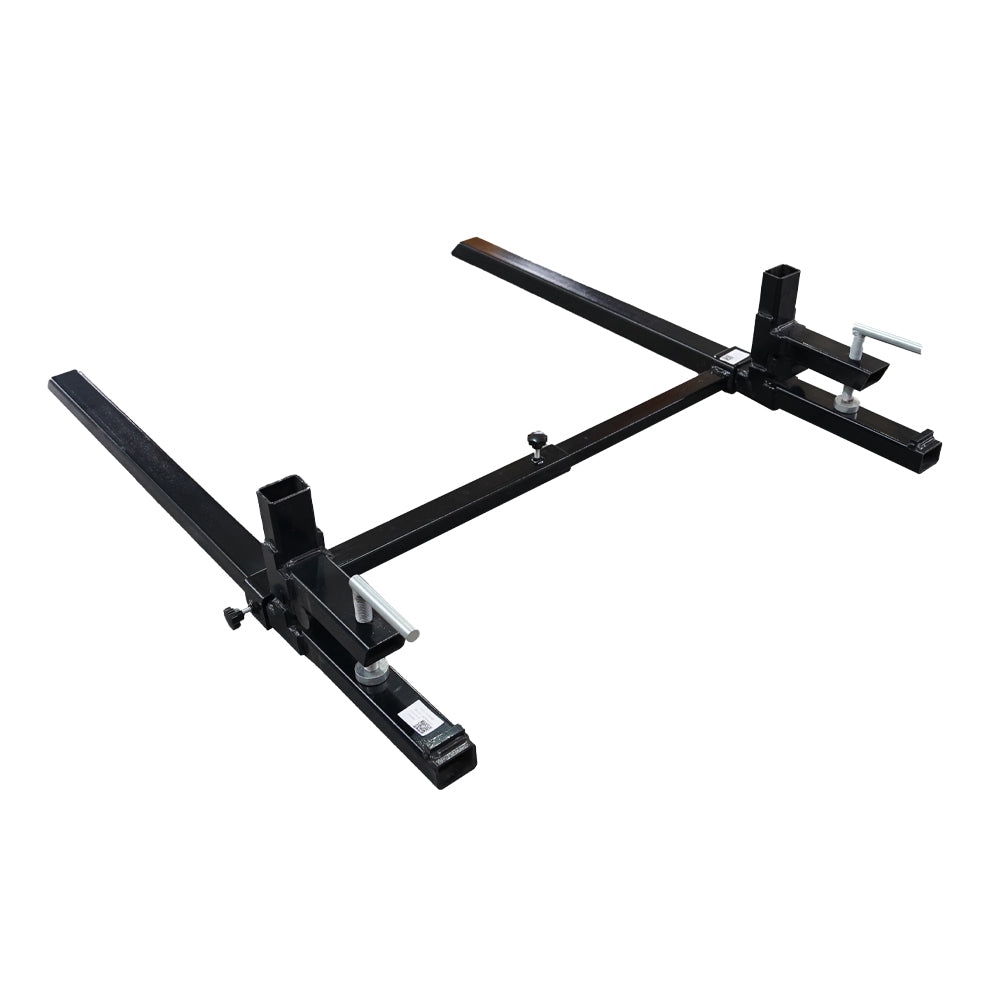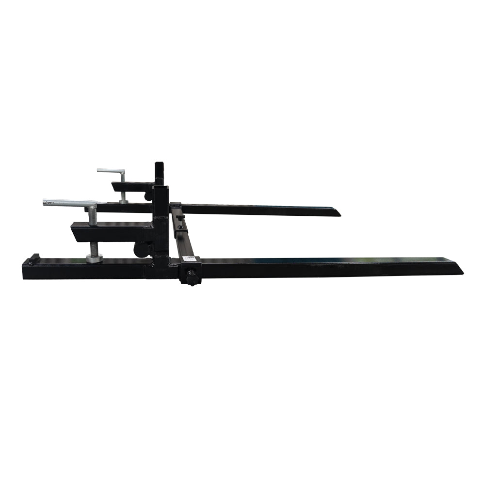 The clamp on pallet forks slide over the cutting edge of the your bucket and clamp down locking the unit in place. This versatile piece of equipment allows you to easily move fence posts, lumber, pallets, and logs around. Rock back protection slots include, chain holes for heavy lifting.