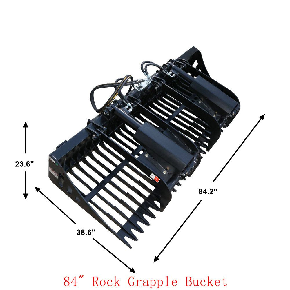 Landy Attachments 84" Skid Steer Rock Grapple Bucket ,Fits Universal Skid Steer Quick Attach