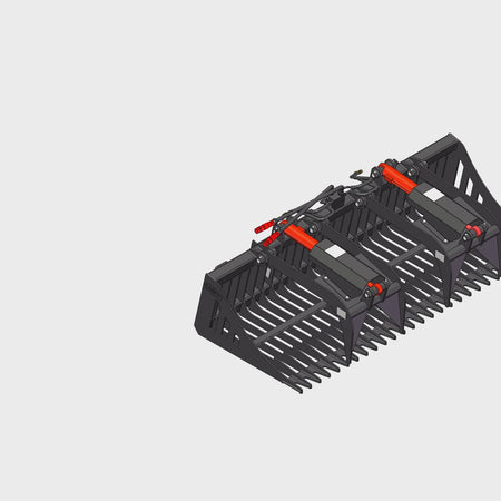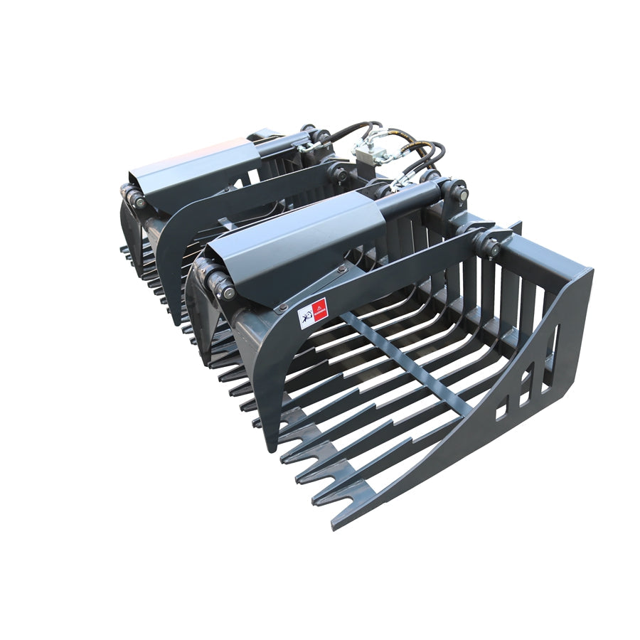 Grapple Buckets combine the sifting prowess of Rock Buckets with strong twin cylinder, dual independent grapple arms. Pick up rocks, clean up job-sites, clear brush, dress yards, carry logs and firewood. With 3/8" bucket tines, 1/2" grapple tines, enclosed cylinders and grease fitting on pivot points this grapple bucket is ready for the hard work.